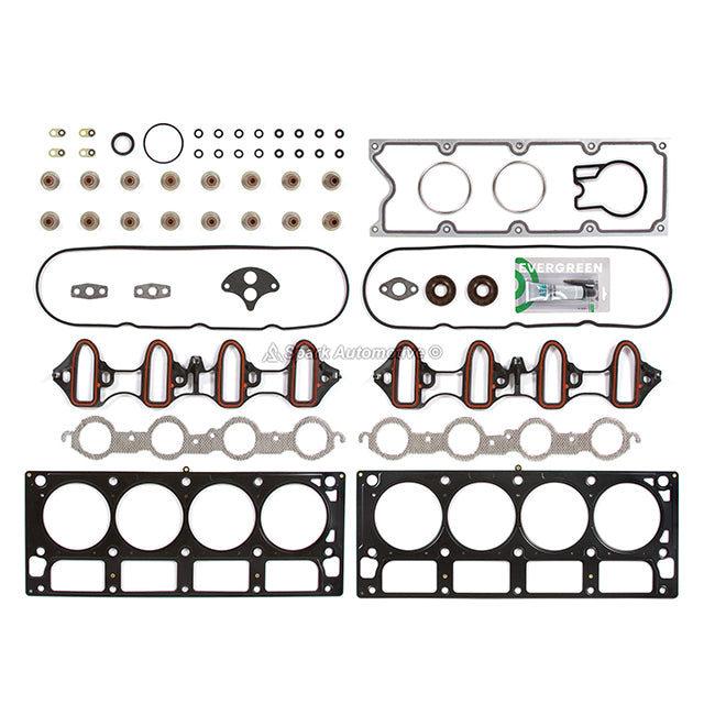Head Gasket Set Fit 01-03 GMC Chevrolet Cadillac Hummer 6.0 OHV VIN N, U. Engineered for reliability, this comprehensive set ensures a complete seal, durability, and compatibility with your vehicle. Achieve a tight and reliable seal for your engine rebuilds or conversions with the Evergreen Gasket Set. Each gasket is designed to fit snugly and prevent leaks, ensuring optimal performance and longevity for your engine. Crafted with durable materials, our gaskets are built to withstand the rigors of engine operation. From heat and pressure to chemical exposure, our gaskets maintain their integrity, providing lasting reliability for your engine. Engineered for perfect fit and compatibility, our gaskets are designed to seamlessly integrate with your engine components. Whether you're rebuilding an existing engine or converting to a new configuration, our gaskets ensure a precise and reliable seal every time.
