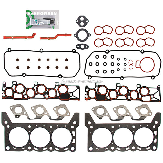 Head Gasket Set Fit 1996 Ford Windstar 3.8 V6 OHV VIN 4 w/ 3mm Intake Manifold. Engineered for reliability, this comprehensive set ensures a complete seal, durability, and compatibility with your vehicle. Achieve a tight and reliable seal for your engine rebuilds or conversions with the Evergreen Gasket Set. Each gasket is designed to fit snugly and prevent leaks, ensuring optimal performance and longevity for your engine. Crafted with durable materials, our gaskets are built to withstand the rigors of engine operation. From heat and pressure to chemical exposure, our gaskets maintain their integrity, providing lasting reliability for your engine. Engineered for perfect fit and compatibility, our gaskets are designed to seamlessly integrate with your engine components. Whether you're rebuilding an existing engine or converting to a new configuration, our gaskets ensure a precise and reliable seal every time.