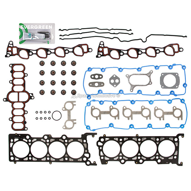 Head Gasket Set Fit 97-98 Ford Lincoln V8 5.4 SOHC 16V VIN L, M, Z. Engineered for reliability, this comprehensive set ensures a complete seal, durability, and compatibility with your vehicle. Achieve a tight and reliable seal for your engine rebuilds or conversions with the Evergreen Gasket Set. Each gasket is designed to fit snugly and prevent leaks, ensuring optimal performance and longevity for your engine. Crafted with durable materials, our gaskets are built to withstand the rigors of engine operation. From heat and pressure to chemical exposure, our gaskets maintain their integrity, providing lasting reliability for your engine. Engineered for perfect fit and compatibility, our gaskets are designed to seamlessly integrate with your engine components. Whether you're rebuilding an existing engine or converting to a new configuration, our gaskets ensure a precise and reliable seal every time.