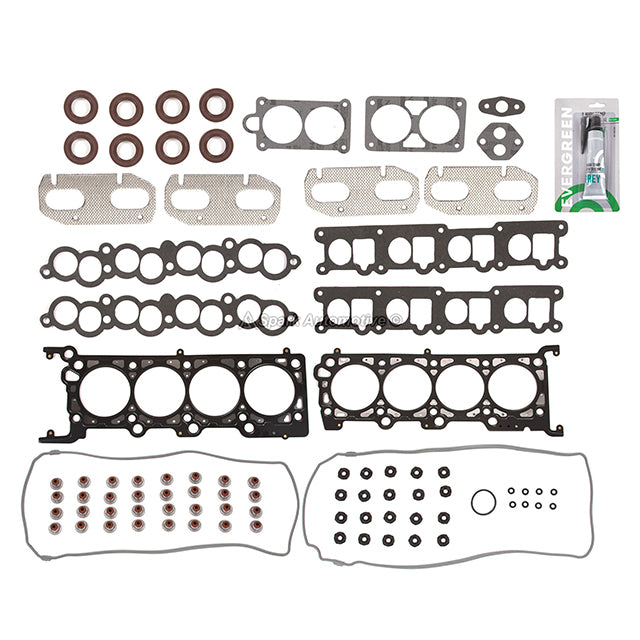 Head Gasket Set Fit 93-94 Lincoln Mark VIII V8 4.6 SOHC INTECH, VIN V. Engineered for reliability, this comprehensive set ensures a complete seal, durability, and compatibility with your vehicle. Achieve a tight and reliable seal for your engine rebuilds or conversions with the Evergreen Gasket Set. Each gasket is designed to fit snugly and prevent leaks, ensuring optimal performance and longevity for your engine. Crafted with durable materials, our gaskets are built to withstand the rigors of engine operation. From heat and pressure to chemical exposure, our gaskets maintain their integrity, providing lasting reliability for your engine. Engineered for perfect fit and compatibility, our gaskets are designed to seamlessly integrate with your engine components. Whether you're rebuilding an existing engine or converting to a new configuration, our gaskets ensure a precise and reliable seal every time.