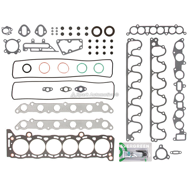Head Gasket Set Fit 82-88 Toyota Cressida 2.8 DOHC 12V 5MGE. Engineered for reliability, this comprehensive set ensures a complete seal, durability, and compatibility with your vehicle. Achieve a tight and reliable seal for your engine rebuilds or conversions with the Evergreen Gasket Set. Each gasket is designed to fit snugly and prevent leaks, ensuring optimal performance and longevity for your engine. Crafted with durable materials, our gaskets are built to withstand the rigors of engine operation. From heat and pressure to chemical exposure, our gaskets maintain their integrity, providing lasting reliability for your engine. Engineered for perfect fit and compatibility, our gaskets are designed to seamlessly integrate with your engine components. Whether you're rebuilding an existing engine or converting to a new configuration, our gaskets ensure a precise and reliable seal every time.