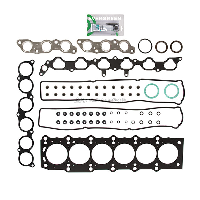 Head Gasket Set Fit 92-98 Lexus GS300 SC300 Toyota Supra 3.0 DOHC 24V 2JZGE. Engineered for reliability, this comprehensive set ensures a complete seal, durability, and compatibility with your vehicle. Achieve a tight and reliable seal for your engine rebuilds or conversions with the Evergreen Gasket Set. Each gasket is designed to fit snugly and prevent leaks, ensuring optimal performance and longevity for your engine. Crafted with durable materials, our gaskets are built to withstand the rigors of engine operation. From heat and pressure to chemical exposure, our gaskets maintain their integrity, providing lasting reliability for your engine. Engineered for perfect fit and compatibility, our gaskets are designed to seamlessly integrate with your engine components. Whether you're rebuilding an existing engine or converting to a new configuration, our gaskets ensure a precise and reliable seal every time.