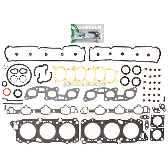 Head Gasket Set Fit 90-97 Infiniti J30 Nissan 300ZX V6 3.0 DOHC VG30DE. Engineered for reliability, this comprehensive set ensures a complete seal, durability, and compatibility with your vehicle. Achieve a tight and reliable seal for your engine rebuilds or conversions with the Evergreen Gasket Set. Each gasket is designed to fit snugly and prevent leaks, ensuring optimal performance and longevity for your engine. Crafted with durable materials, our gaskets are built to withstand the rigors of engine operation. From heat and pressure to chemical exposure, our gaskets maintain their integrity, providing lasting reliability for your engine. Engineered for perfect fit and compatibility, our gaskets are designed to seamlessly integrate with your engine components. Whether you're rebuilding an existing engine or converting to a new configuration, our gaskets ensure a precise and reliable seal every time.
