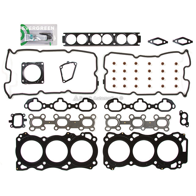 Head Gasket Set Fit 01-04 Nissan Pathfinder Infiniti QX4 3.5 DOHC VQ35DE. Engineered for reliability, this comprehensive set ensures a complete seal, durability, and compatibility with your vehicle. Achieve a tight and reliable seal for your engine rebuilds or conversions with the Evergreen Gasket Set. Each gasket is designed to fit snugly and prevent leaks, ensuring optimal performance and longevity for your engine. Crafted with durable materials, our gaskets are built to withstand the rigors of engine operation. From heat and pressure to chemical exposure, our gaskets maintain their integrity, providing lasting reliability for your engine. Engineered for perfect fit and compatibility, our gaskets are designed to seamlessly integrate with your engine components. Whether you're rebuilding an existing engine or converting to a new configuration, our gaskets ensure a precise and reliable seal every time.