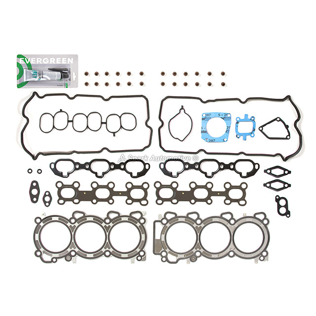 Head Gasket Set Fit 00-01 Nissan Maxima Infiniti I30 3.0 DOHC 24V VQ30DE. Engineered for reliability, this comprehensive set ensures a complete seal, durability, and compatibility with your vehicle. Achieve a tight and reliable seal for your engine rebuilds or conversions with the Evergreen Gasket Set. Each gasket is designed to fit snugly and prevent leaks, ensuring optimal performance and longevity for your engine. Crafted with durable materials, our gaskets are built to withstand the rigors of engine operation. From heat and pressure to chemical exposure, our gaskets maintain their integrity, providing lasting reliability for your engine. Engineered for perfect fit and compatibility, our gaskets are designed to seamlessly integrate with your engine components. Whether you're rebuilding an existing engine or converting to a new configuration, our gaskets ensure a precise and reliable seal every time.