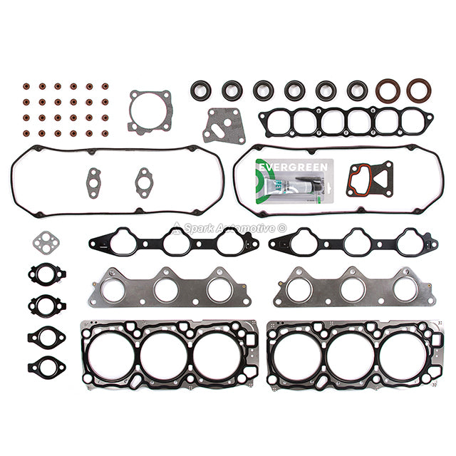 Head Gasket Set Fit 97-04 Mitsubishi V6 3.5 SOHC 24V 6G74. Engineered for reliability, this comprehensive set ensures a complete seal, durability, and compatibility with your vehicle. Achieve a tight and reliable seal for your engine rebuilds or conversions with the Evergreen Gasket Set. Each gasket is designed to fit snugly and prevent leaks, ensuring optimal performance and longevity for your engine. Crafted with durable materials, our gaskets are built to withstand the rigors of engine operation. From heat and pressure to chemical exposure, our gaskets maintain their integrity, providing lasting reliability for your engine. Engineered for perfect fit and compatibility, our gaskets are designed to seamlessly integrate with your engine components. Whether you're rebuilding an existing engine or converting to a new configuration, our gaskets ensure a precise and reliable seal every time.