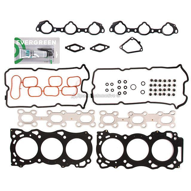 Head Gasket Set Fit 05-09 Nissan Xterra Frontier Suzuki 4.0 DOHC VQ40DE. Engineered for reliability, this comprehensive set ensures a complete seal, durability, and compatibility with your vehicle. Achieve a tight and reliable seal for your engine rebuilds or conversions with the Evergreen Gasket Set. Each gasket is designed to fit snugly and prevent leaks, ensuring optimal performance and longevity for your engine. Crafted with durable materials, our gaskets are built to withstand the rigors of engine operation. From heat and pressure to chemical exposure, our gaskets maintain their integrity, providing lasting reliability for your engine. Engineered for perfect fit and compatibility, our gaskets are designed to seamlessly integrate with your engine components. Whether you're rebuilding an existing engine or converting to a new configuration, our gaskets ensure a precise and reliable seal every time.