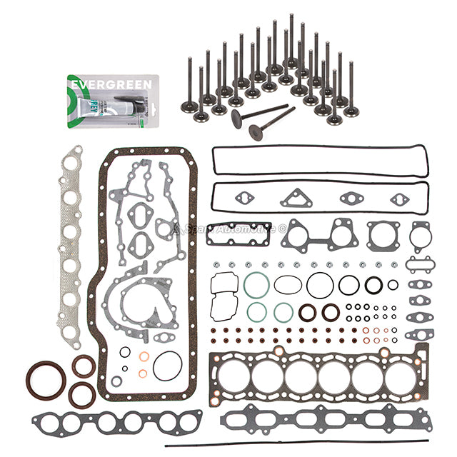 Full Gasket Set Intake Exhaust Valves Fit 86-92 Toyota Celica Supra 3.0 7MGE. This gasket and instake exhaust valve set is just what you need to keep your car in good running order. The gasket and instake exhaust valve set that you will receive in this kit is a high quality gasket that the dealers and rebuilding shops use everyday. So do not settle for lesser quality parts when it comes to engine repair. These gasket and instake exhaust valve sets are designed for the professional installer. It does not come with any installation instructions. If you do not have a service manual, please consult a professional mechanic prior to installing this gasket and instake exhaust valve set.