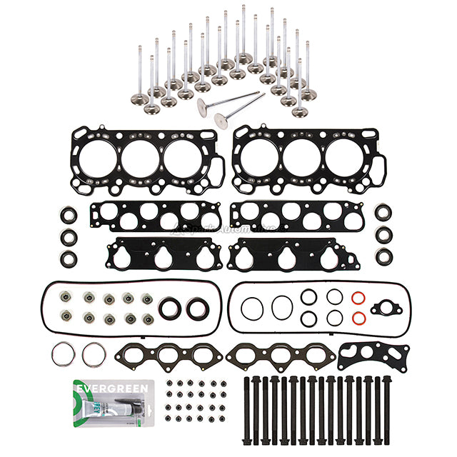Head Gasket Set Intake Exhaust Valves Fit 97-02 Acura Honda 3.0L SOHC J30A1. This head gasket intake exahaust valve set is just what you need to keep your car in good running order. The head gasket intake exahaust valve set that you will receive in this kit is a high quality gasket that the dealers and rebuilding shops use everyday. So do not settle for lesser quality parts when it comes to engine repair. These head gasket intake exahaust valve sets are designed for the professional installer. It does not come with any installation instructions. If you do not have a service manual, please consult a professional mechanic prior to installing this head gasket intake exahaust valve set.