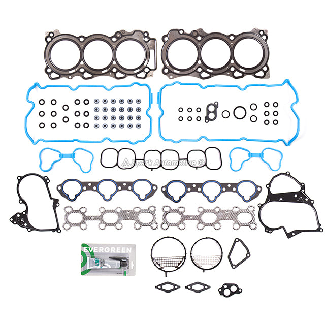 Head Gasket Set Fit 09-14 Nissan Altima Maxima Murano Quest 3.5L DOHC VQ35DE. Engineered for reliability, this comprehensive set ensures a complete seal, durability, and compatibility with your vehicle. Achieve a tight and reliable seal for your engine rebuilds or conversions with the Evergreen Gasket Set. Each gasket is designed to fit snugly and prevent leaks, ensuring optimal performance and longevity for your engine. Crafted with durable materials, our gaskets are built to withstand the rigors of engine operation. From heat and pressure to chemical exposure, our gaskets maintain their integrity, providing lasting reliability for your engine. Engineered for perfect fit and compatibility, our gaskets are designed to seamlessly integrate with your engine components. Whether you're rebuilding an existing engine or converting to a new configuration, our gaskets ensure a precise and reliable seal every time.