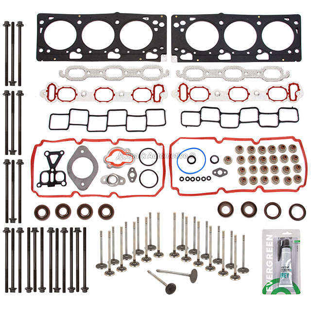 Head Gasket Set Intake Exhaust Valves Fit 07-09 Chysler 300 Sebring Dodge 3.5L. This head gasket intake exahaust valve set is just what you need to keep your car in good running order. The head gasket intake exahaust valve set that you will receive in this kit is a high quality gasket that the dealers and rebuilding shops use everyday. So do not settle for lesser quality parts when it comes to engine repair. These head gasket intake exahaust valve sets are designed for the professional installer. It does not come with any installation instructions. If you do not have a service manual, please consult a professional mechanic prior to installing this head gasket intake exahaust valve set.