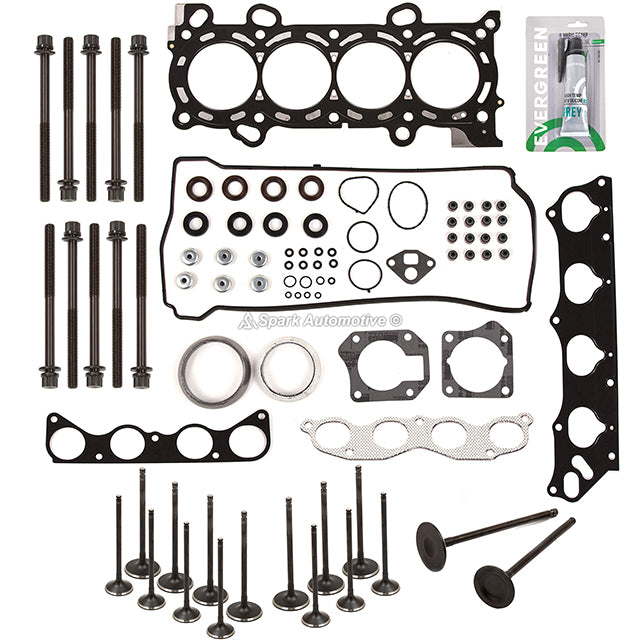 Head Gasket Set Intake Exhaust Valves Fit 04-09 Honda Acura 2.4L K24Z1 K24A2 A8. This head gasket intake exahaust valve set is just what you need to keep your car in good running order. The head gasket intake exahaust valve set that you will receive in this kit is a high quality gasket that the dealers and rebuilding shops use everyday. So do not settle for lesser quality parts when it comes to engine repair. These head gasket intake exahaust valve sets are designed for the professional installer. It does not come with any installation instructions. If you do not have a service manual, please consult a professional mechanic prior to installing this head gasket intake exahaust valve set.