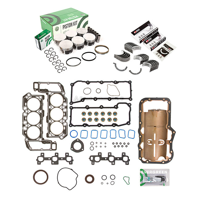 Full Gasket Set Pistons Bearings Fit 05-09 Dodge Jeep Cherokee 3.7. This gasket bearings piston set is just what you need to keep your car in good running order. The gasket bearings piston set that you will receive in this kit is a high quality gasket that the dealers and rebuilding shops use everyday. So do not settle for lesser quality parts when it comes to engine repair. These gasket bearings piston sets are designed for the professional installer. It does not come with any installation instructions. If you do not have a service manual, please consult a professional mechanic prior to installing this gasket bearings piston set.