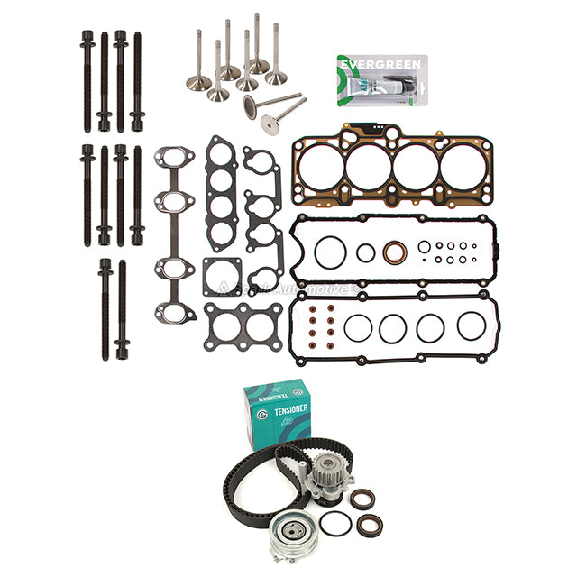 Head Gasket Set Valves Timing Belt Kit Fit 98-03 Volkswagen Golf Jetta Beetle 8V. This head gasket intake exahaust valve set is just what you need to keep your car in good running order. The head gasket intake exahaust valve set that you will receive in this kit is a high quality gasket that the dealers and rebuilding shops use everyday. So do not settle for lesser quality parts when it comes to engine repair. These head gasket intake exahaust valve sets are designed for the professional installer. It does not come with any installation instructions. If you do not have a service manual, please consult a professional mechanic prior to installing this head gasket intake exahaust valve set.