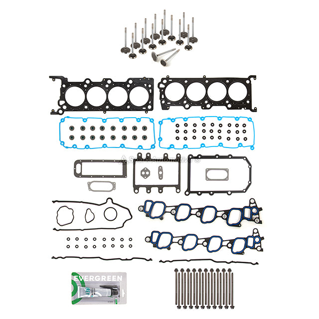 Head Gasket Set Intake Exhaust Valves Fit 99-00 Ford F-150 Supercharged 5.4L. This head gasket intake exahaust valve set is just what you need to keep your car in good running order. The head gasket intake exahaust valve set that you will receive in this kit is a high quality gasket that the dealers and rebuilding shops use everyday. So do not settle for lesser quality parts when it comes to engine repair. These head gasket intake exahaust valve sets are designed for the professional installer. It does not come with any installation instructions. If you do not have a service manual, please consult a professional mechanic prior to installing this head gasket intake exahaust valve set.