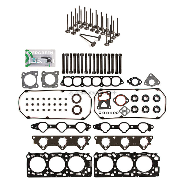 Head Gasket Set Intake Exhaust Valves Fit 95-98 Mitsubishi Montero 3.5. This head gasket intake exahaust valve set is just what you need to keep your car in good running order. The head gasket intake exahaust valve set that you will receive in this kit is a high quality gasket that the dealers and rebuilding shops use everyday. So do not settle for lesser quality parts when it comes to engine repair. These head gasket intake exahaust valve sets are designed for the professional installer. It does not come with any installation instructions. If you do not have a service manual, please consult a professional mechanic prior to installing this head gasket intake exahaust valve set.